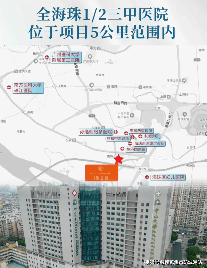 医疗资源同样丰富,项目附近约750米处有中山大学孙逸仙纪念医院(三甲),1.5公里内有海珠区妇儿医院,3.5公里内还有南方医科大学珠江医院、广州医科大学附属第二医院等多家医疗机构,为居民健康保驾护航。