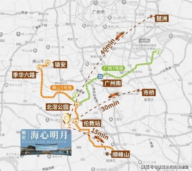 顺伦海心明月地处广佛同城化的前沿地带,凭借其紧邻广州的地理优势,能够轻松连接荔湾、番禺、白云等核心区域。双轨道环绕——地铁3号线伦教站和广珠城际铁路顺德站,加上周边干道如伦桂路、龙洲公路等以及多条高速公路,使得居民出行极为便捷。此外,根据《深入推进广佛全域同城化战略合作协议》,该区域被定位为佛山新的经济增长中轴线,未来发展前景广阔。