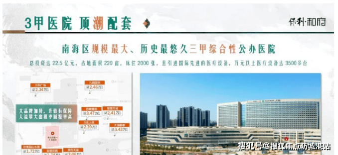 狮山首家且唯一一家三甲医院——南海人民医院新院区就坐落在保利和府附近。这座投资20亿元的新院区占地260亩,建筑面积是旧院区的3.6倍,规划有2000张床位,停车位2365个,大型诊疗设备和手术室数量均为旧院区的2-3倍。完善的医疗设施,为居民提供了坚实的健康保障。