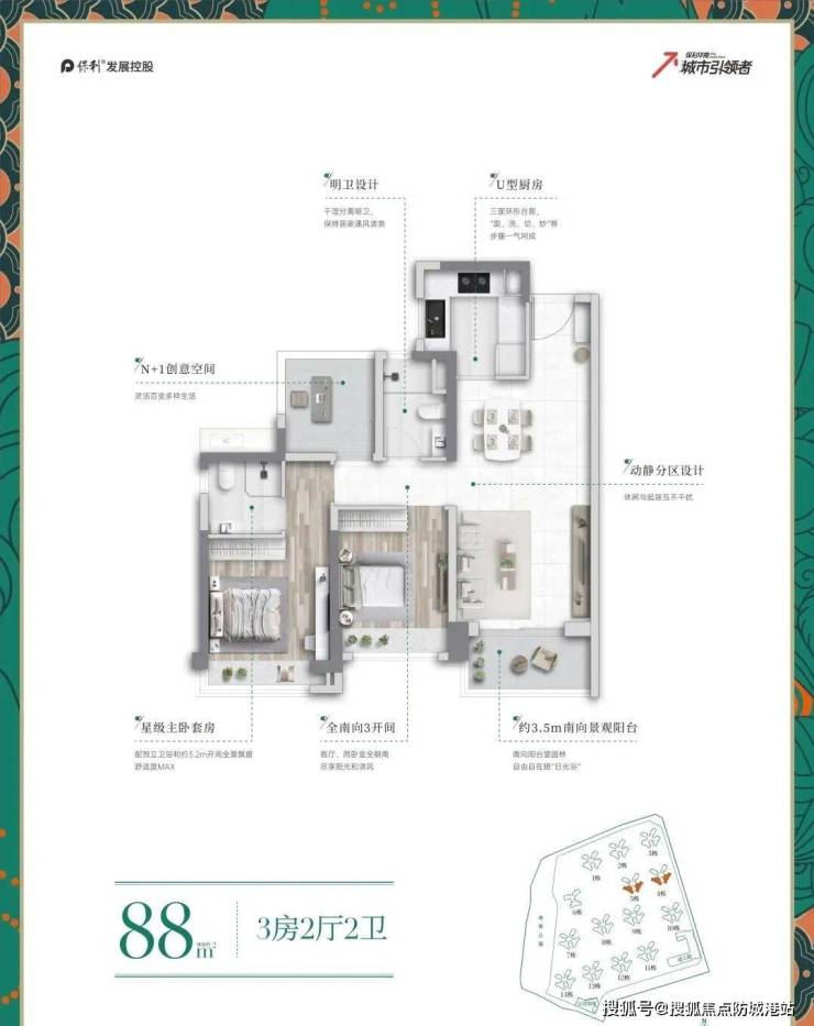 保利和府推出的户型包括建面约88平方米的爆款2+1房和约113平方米的3+1房。其中,88平方米户型使用率超90%,做到了三开间朝南,餐客厨一体化设计,居住尺度感丝毫不输市面上100平方米以上的户型。而113平方米户型则更加宽敞舒适,拥有约13.9米超宽采光面和约6.5米超薄进深,南北对流设计,进一步提升了居住的舒适度。