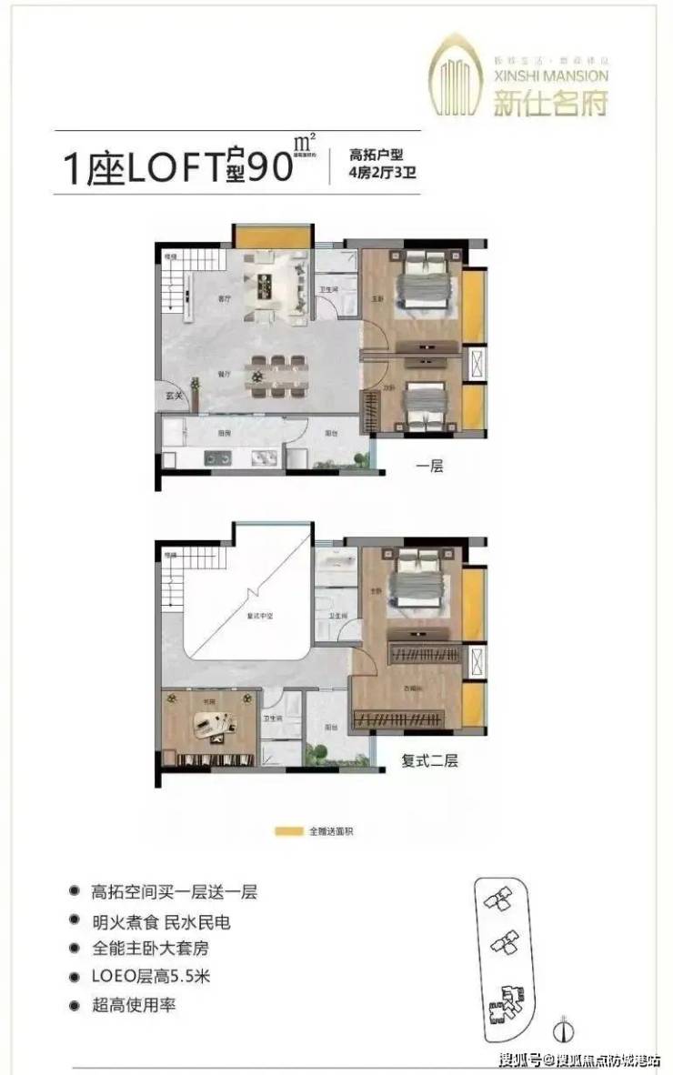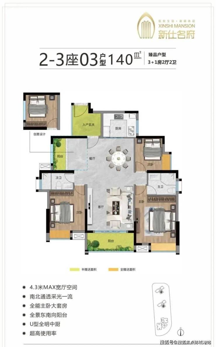 新仕名府提供的户型种类丰富多样,涵盖了从适合年轻白领或小型家庭的平层公寓(71-92平方米)到复式公寓(71-95平方米),再到三至四房的住宅单元(面积从107至141平方米不等)。所有户型的层高均达到了3.1米,部分复式结构更是高达5.5米,赋予空间更多的可能性。其中,臻品户型——3+1房2厅2卫(约140平方米)尤为引人注目,该户型设计合理,功能分区明确,主卧带有独立卫生间,客厅宽敞明亮,阳台视野开阔,完美诠释了舒适生活的真谛。