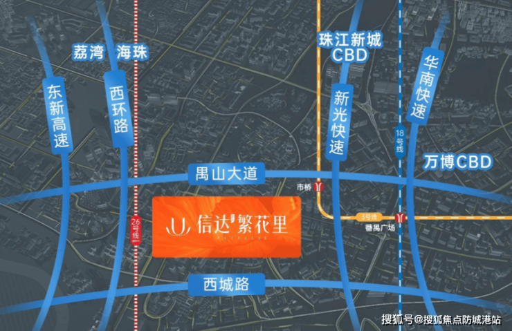 主干道与高速:临近禺山大道和西环路,接驳东新高速及新光快速,通达荔湾、海珠、万博CBD等区域。