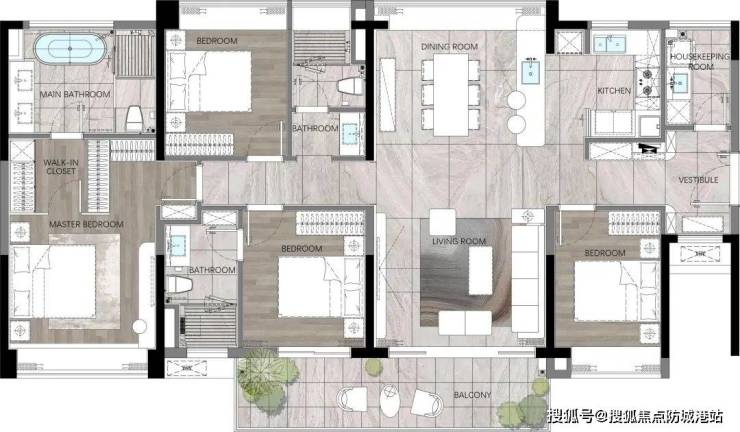 180㎡奢华户型:通过四开间的设计,赋予了住户更为宽敞的会客空间,三卫设计和独立家政间的设置,更是提升了生活的便捷性和舒适度。