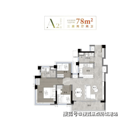 78㎡三房两厅两卫:建面使用率 115%-121%,实际使用面积约 90-95㎡,超越一路之隔万科城市之光 99㎡三房(使用面积约 79㎡)。全南向四开间设计,客厅连接约 3.6 米南向阳台,主卧套间配备独立卫浴,实测主卧面积超 15㎡,两个次卧最小面积达 8.5㎡,双卫生间设计避免早高峰使用冲突,厨房预留双开门冰箱位置,完美适配年轻刚需家庭。