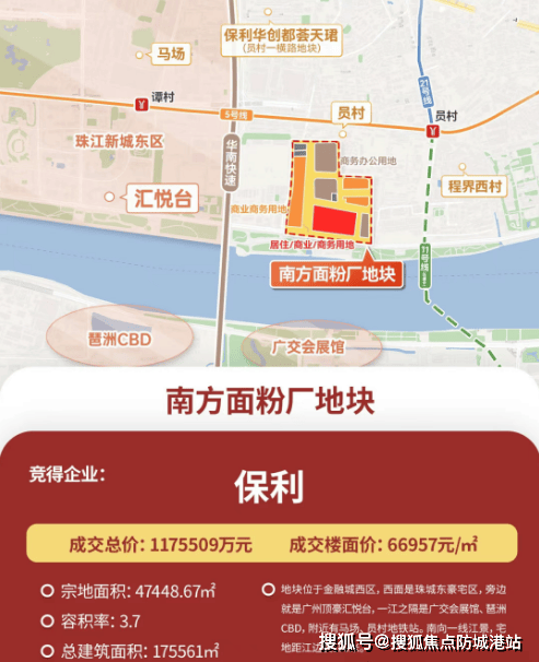 2024年9月29日,保利地产经过148轮激烈竞价,最终以总价117.55亿元拍得天河临江大道北侧AT080722地块(南方面粉厂地块),折合楼面价66,957元/㎡。扣除配建后,实际可售楼面价高达76,502元/㎡。这一成交不仅创造了天河地王的新纪录,也成为广州楼市中楼面价TOP2的项目。本文将详细探讨该项目的独特魅力和优势。