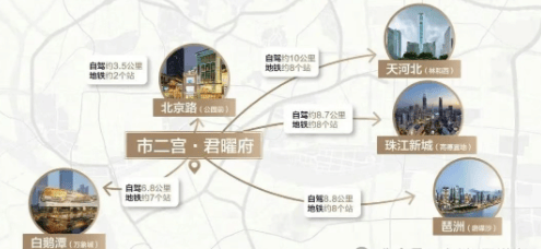 君曜府紧邻地铁2号线和在建的28号线(佛穗莞城际)交汇点——市二宫站,提供便捷的城市轨道交通。周边还有多条主干道如江南大道、内环路等,以及超过20条日夜班公交线路,构建了四通八达的交通网络。未来,28号线开通后,将大大缩短前往琶洲等地的时间,提高出行效率。