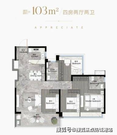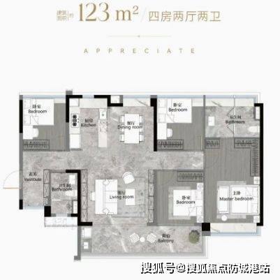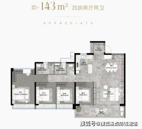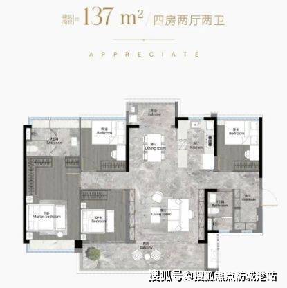 建筑面积约103-186平方米南向阔景四房