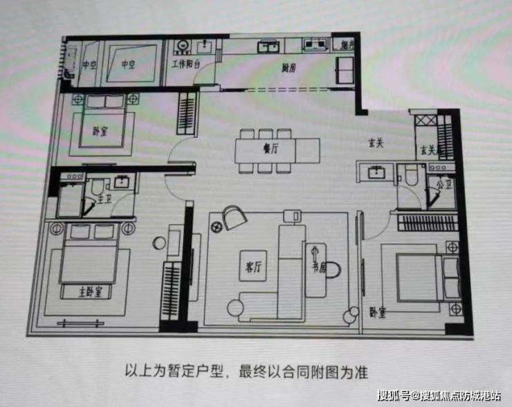 既然是改善产品,它没有压缩客餐厅空间来多做房间,而是做了大方厅+3房,类似LDK一体化的空间约50+㎡,完全可以做家庭影院。