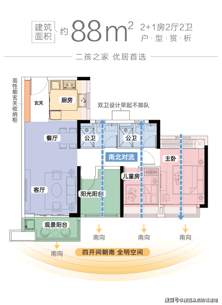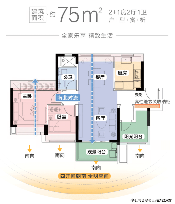 A户型(75㎡三房):紧凑实用,适合年轻小家庭,南北通透,采光通风良好。