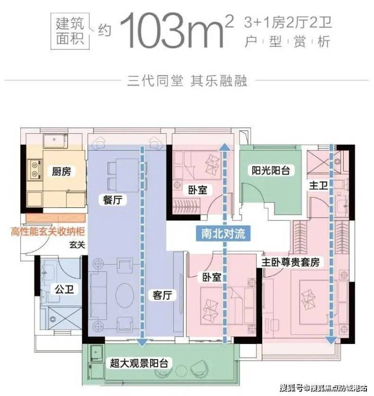 C户型(103㎡四房):空间利用率高,适合二胎家庭或三代同堂的家庭结构,拥有独立书房和餐厅,提升了生活品质。