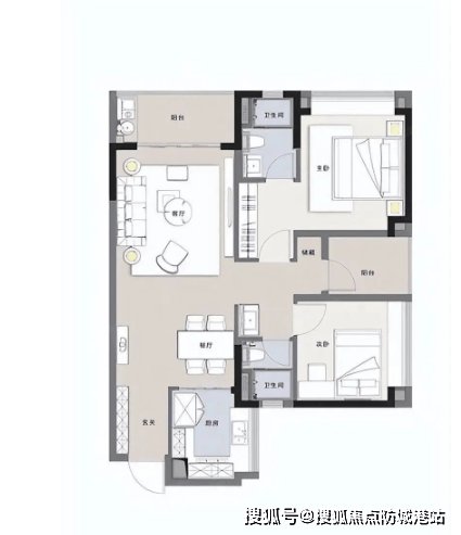 95㎡三房两厅两卫:紧凑实用,功能分区合理,适合年轻家庭或首次置业者。