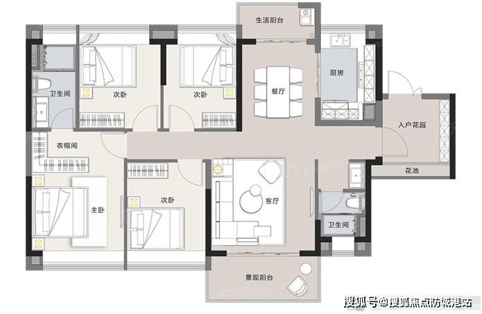 125㎡四房两厅两卫:空间宽敞,布局合理,适合家庭成员较多的家庭,享受高品质的生活体验。