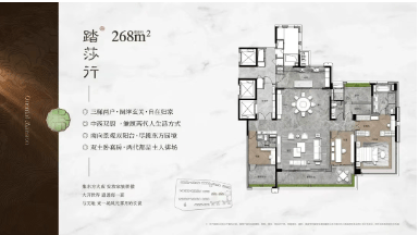 保利天瑞提供了从107㎡至268㎡不等的多种户型选择,充分满足不同家庭结构的需求。特别是268㎡的户型,位于社区C位,双中轴园景环抱,南北两面均可享受开阔的中轴园林景观。该户型拥有一个面积达到110㎡的LDKG大方厅,客餐厅均为约7米面宽,营造出宽敞明亮的空间感。主卧设计有双开门和步入式衣帽间,配备270°转角飘窗,带来极致的视觉享受和生活品质。这些精心设计的细节,无不彰显着保利天瑞对居住品质的不懈追求。