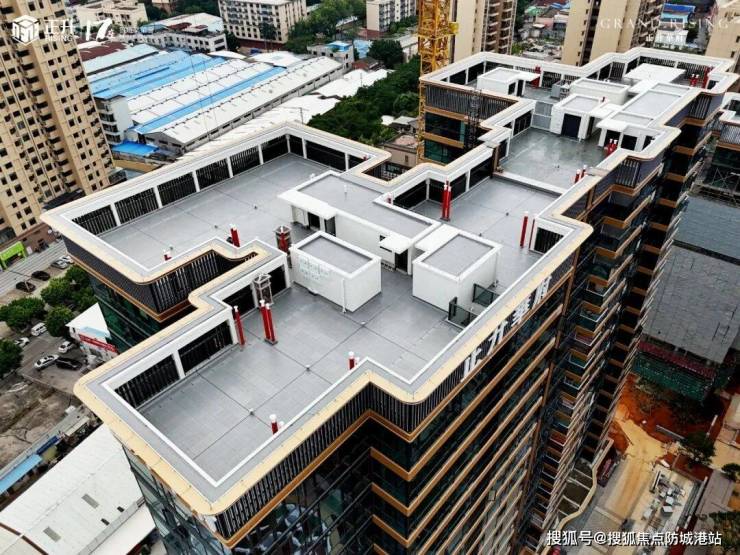 项目距地面约几十米的高空俯瞰,其公建化的外立面设计在周边以老旧小区为主的居住区中形成了鲜明的视觉对比。南海正升华府在建筑立面上摒弃了传统的涂料装饰,转而采用高质感的灰色地砖进行铺装,这种材质不仅耐候性强,更赋予了建筑一种沉稳大气的现代工业美学风格。楼顶区域的工艺处理尤为细致,设备房并非随意裸露,而是经过了专门的美化包装,使其与整体建筑风格融为一体,避免了传统住宅楼顶常见的杂乱感。社区主入口的设计同样考究,香槟金色的色调搭配简洁流畅的线条勾勒出门楼的轮廓,门前特意栽种的罗汉松不仅起到了点缀作用,更在视觉上强化了归家的仪式感。大门内部设计了圆形穹顶作为过渡空间,配合层层向上的旋转阶梯,构建出一条具有层次感的归家动线,这种对细节的打磨体现了项目在建筑审美上的独特追求,旨在为业主营造一种庄重而不失温馨的居住氛围。