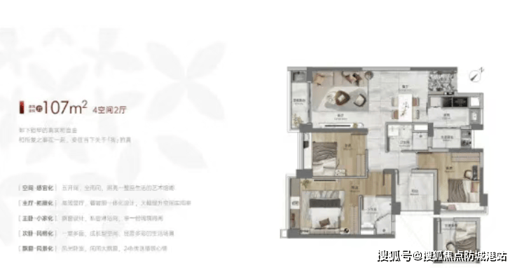 126-139㎡大四房:五开间朝南,高层可望江景,配备双阳台+独立衣帽间。