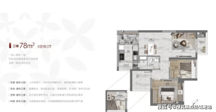 76-78㎡三房:得房率125%(市测绘中心报告编号GZ2025CH001),全屋南向,总价280万起;