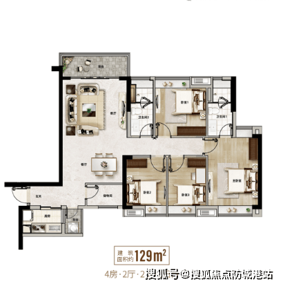 建面约 129 平户型:大户型设计,空间开阔,功能分区明晰,为改善型购房者提供了舒适的居住体验。宽敞的客厅、舒适的卧室以及合理的厨房布局,让您和家人享受高品质的生活。