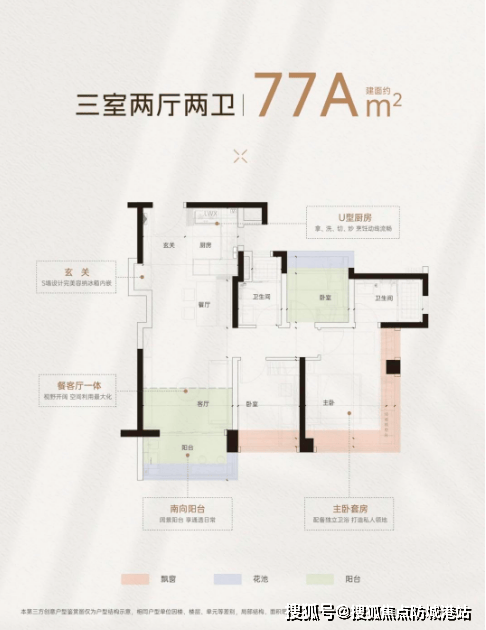 77㎡三房:三面宽南向设计,LDKB一体化餐客厨空间,适配单身到三口之家全周期;