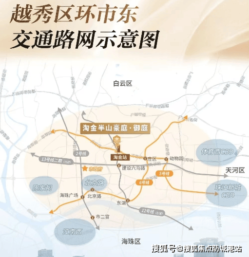 交通便利:步行可到达地铁5号线淘金站,经5站直达珠江新城,公交线路众多。