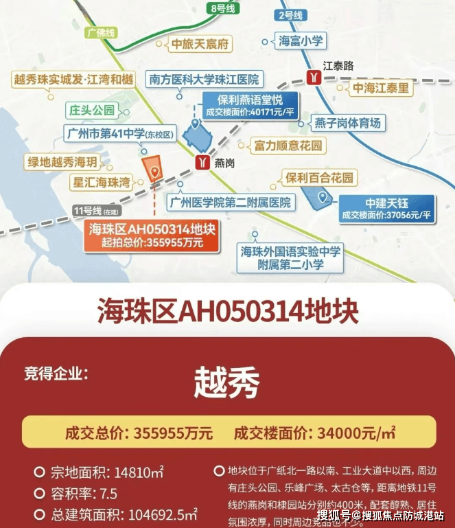 越秀熙悦江湾位于广州市海珠区广纸板块,是越秀地产在2024年9月19日以楼面价3.4万/平方米、总价35.6亿元取得的地块。该项目占地面积约为14810平方米,总建筑面积约104693平方米,规划为一个小型社区项目,包含四栋住宅楼,预计提供约1040户住宅单位。