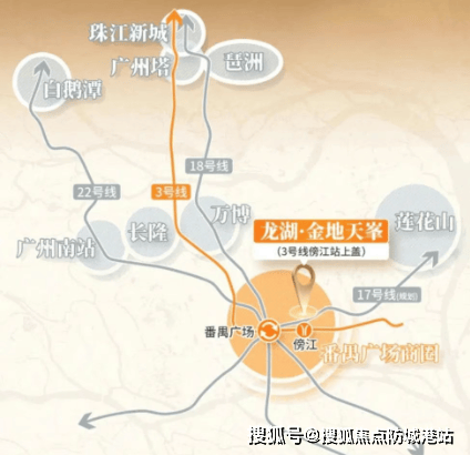 龙湖金地天峯地处番禺广场板块,临近亚运大道,交通网络发达。小区楼下即为地铁3号线东延段傍江站,通过地铁可以快速到达珠江新城、琶洲等多个核心区域。同时,项目可通过地下车库直达龙湖天街商业,再到地铁口,实现了无缝对接,极大地方便了居民出行。
