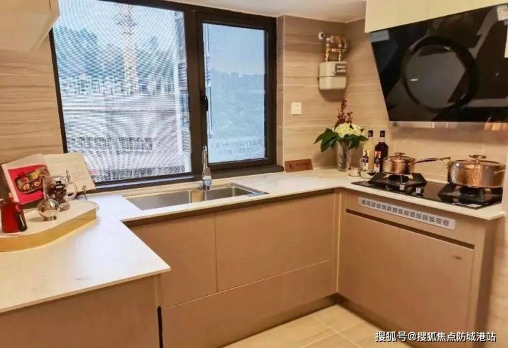 同时,该厨房还是时下最受欢迎的U型设计,切、煮、洗非常方便,还可同时站下三个人。