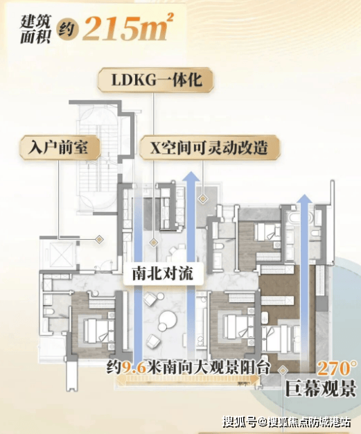 高端户型方面,215㎡大平层采用3梯3户设计,配备超大入户前室,约9.6米南向大景观阳台与主卧270°观景飘窗,将园林景观尽收眼底;300㎡大平层为三梯两户配置,双套房设计,在家即可俯瞰长隆景观,沉浸式感受世界级文旅IP的欢乐氛围,彰显高端居住品质。