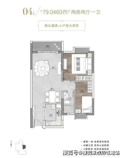 79㎡ 两房一厅:南向朝向,配备270°转角飘窗,冬暖夏凉,主次卧比例均衡,得房率高,总价约300万元,是刚需家庭的热门之选。