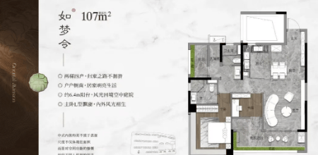 107㎡三房两厅一卫:紧凑实用,适合刚需家庭。
