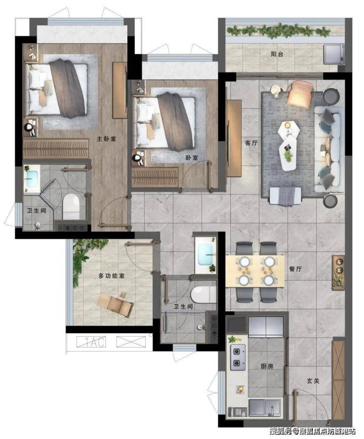 89㎡三房:南北对流,主卧带270°转角飘窗,总价可控;