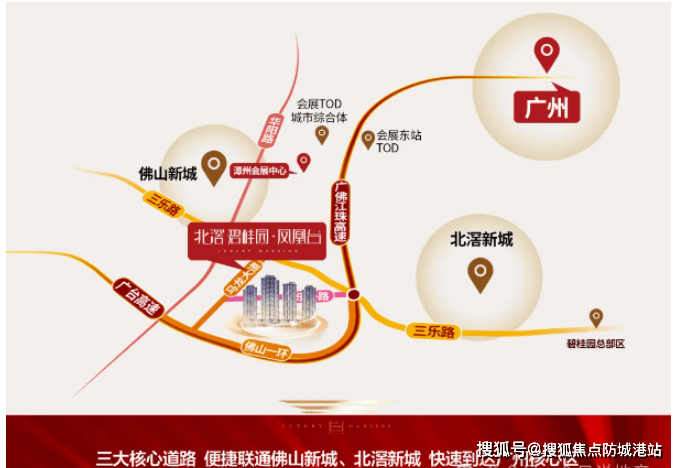 碧桂园凤凰台位于潭州会展板块,周边工业厂房众多,虽然城市配套相对较少,但项目本身通过精心规划和设计弥补了这一不足。项目紧临乐一路,向西可通达佛山新城,向东则直达北滘新城生活圈、碧桂园总部区及机器人智谷产业区。此外,通过广台高速接驳广佛江珠,可以快速连通粤港澳大湾区各大城市,实现1小时都市生活圈的梦想。