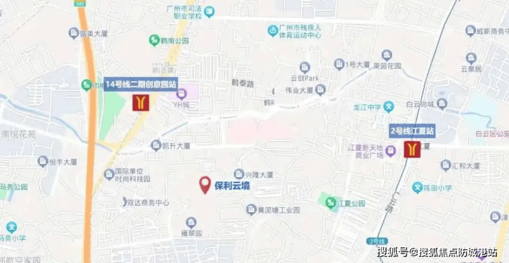 项目交通条件优越,拥有三横四纵的主干道网络,便于居民前往城市各个角落及机场等地。此外,直线距离约600米处设有在建的地铁14号线二期创意园站,预计于2025年开通。从创意园站出发,往北可直达嘉禾望岗TOD,往南则能到达建设中的白云站TOD,未来将成为重要的交通枢纽之一。