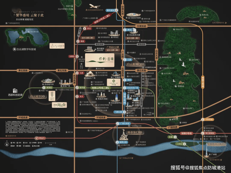 保利云境位于黄石东路旁,处于白云新城的核心地带。这一地理位置不仅使其成为了城市资源汇聚的地方,还赋予了其极高的区域价值。周边交通网络发达,距离广云路、机场高速以及华南快速等主要道路均在3公里范围内,无论是自驾还是公共交通出行都极为便利。