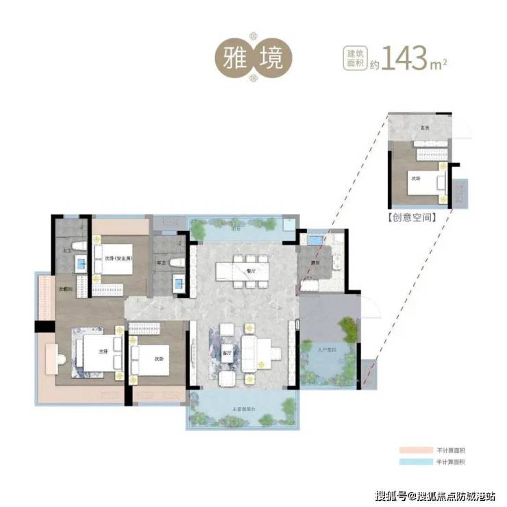 超85%得房率:通过飘窗、花池等可拓展空间,实现“零浪费”户型设计;