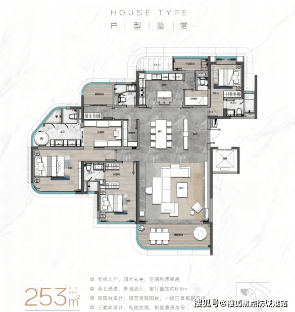 (六)建面253㎡五房两厅三卫:一期江景大平层品质之选