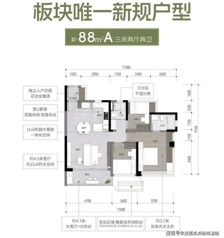 成交数据:截至 2026 年 1 月 13 日,已网签 960 套房源,去化率达 80%,其中 77㎡三房与 88㎡三房户型最受市场青睐,去化率均超过 90%,成为板块内的爆款户型。