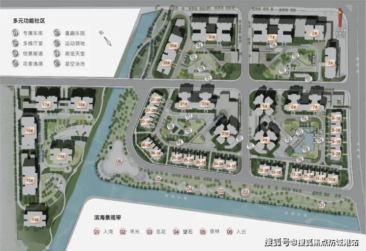 休闲配套:沿江铺设8公里滨水景观带,6大亲水平台,近30处怡人景观