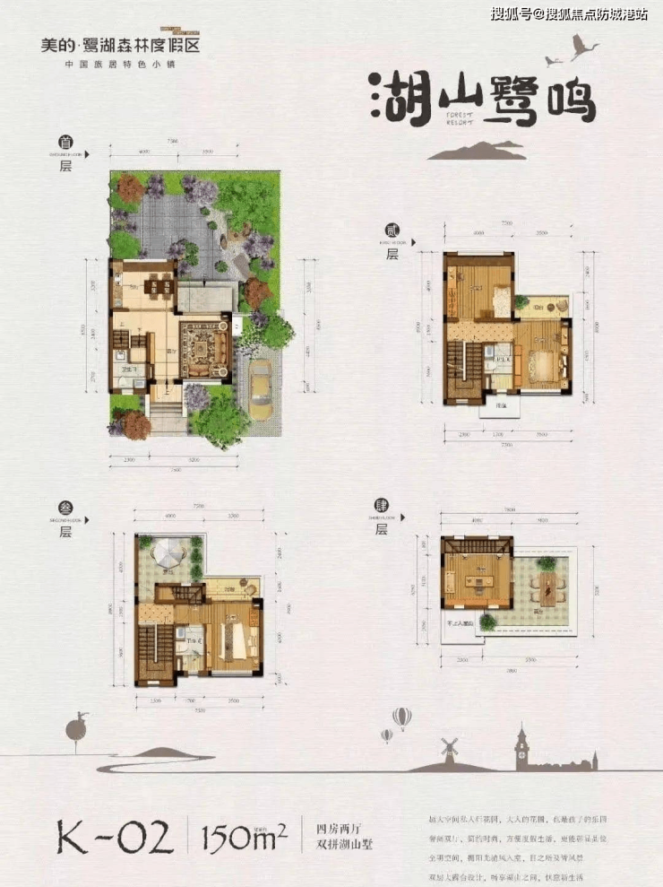 户型鉴赏:美的•鹭湖建面约130-150-242-263-357㎡湖山别墅,