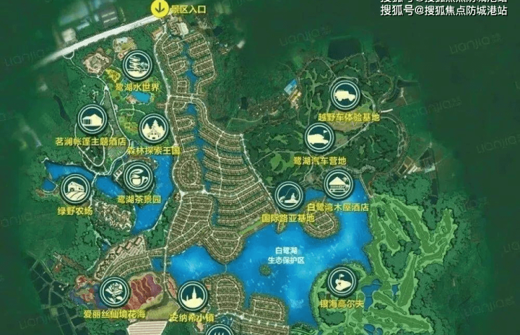 环境非常优美,项目内涵盖白鹭湖生态保护区、鹭湖探索王国、鹭湖水世界、高尔夫球场、国际路亚营地、半山汤谷温泉等20个景点,集文化旅游、风情商业、乐活养生、主题酒店等多元业态于一体