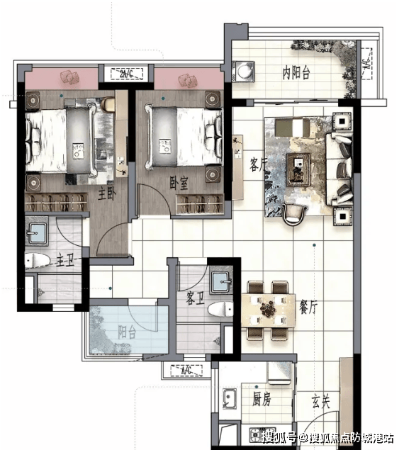 项目规划 28 栋高层、超高层与叠墅,84-196㎡全户型覆盖刚需至改善需求。84㎡2+1 房实现低门槛上车,98㎡三房配备 6.1 米 L 型阳台,142㎡四房拥有 7.2 米宽景阳台,167㎡下叠使用率高达 300%,赠送地下室与专属绿地。