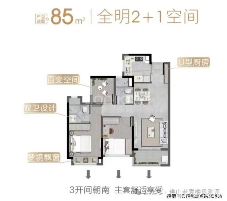 户型神作,超高得房:96%以上的实用率,全南向设计,LDKB一体化,85㎡做三房两卫,空间利用率碾压同板块竞品。
