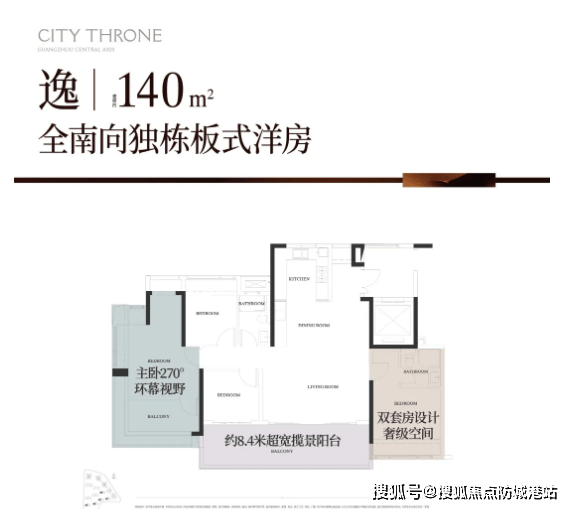 另一大亮点是T7栋央景楼王,同样全盘仅此一栋,主打建面约140平户型,货量稀少。该楼栋位于园林中央,是唯一不靠近马路的楼栋,景观资源优越,可眺望浮岛森谷与白云山,园林造价成本比同小区其他楼栋高出3倍,每一处景观都精心雕琢。140平户型为四开间朝南设计,270°飘窗+约8.4米南向巨幕阳台+双南向套房,空间设计惊艳。约34㎡LDKG宽厅可容纳8人座大餐桌,满足亲朋好友聚会需求;双南向套房设计,即使与父母同住也能互不干扰,让长辈享受温暖明亮的居住环境。