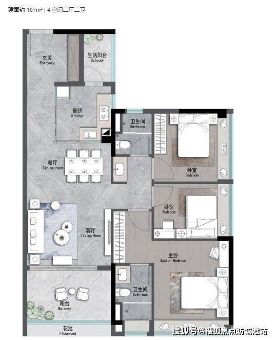 107㎡四房两卫(南向,LDK一体化设计,总价560-650万)