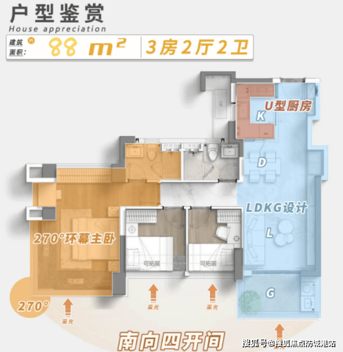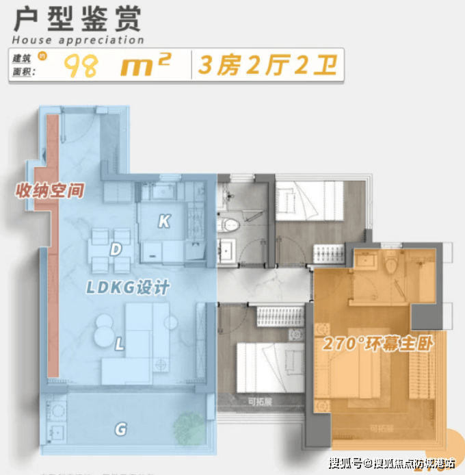 黄埔润府首开的2号地块共推出两栋商品房,其中1栋超高层住宅楼总高47层,三梯五户;2栋高层住宅楼总高31层,两梯五户。所有户型均为南向设计,包括88㎡、98㎡和113㎡三种户型,满足不同家庭结构的需求。