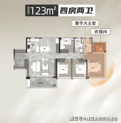 123平方米四房:卧室宽敞舒适,体验感相当于144平方米的大宅。