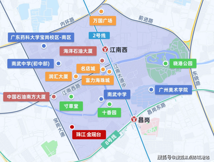 项目对面即为省一级广州市江南外国语学校,2公里内汇聚昌岗中路小学、广州市第五中学、广州市南武中学等名校,教育资源堪比越秀区。