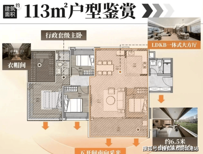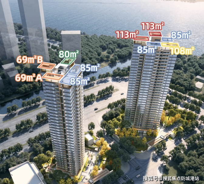 113㎡:大三房设计,一线江景,享受豪华居住体验。
