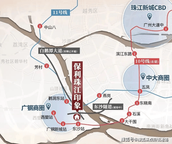 该楼盘坐落于广州市千亿打造的后航道沿江经济带,享受广州唯一的世界级内港湾资源。距离即将于2025年开通的地铁10号线东沙站约700米,未来可通过四站换乘11号环线,便捷到达城市中心五区。此外,通过东沙大道快速接驳环城高速、东新高速,白鹅潭大道串联十里沿江总部经济带,东沙隧道(在建中)和丫髻沙大桥直达海珠,提供了多样化的出行选择。