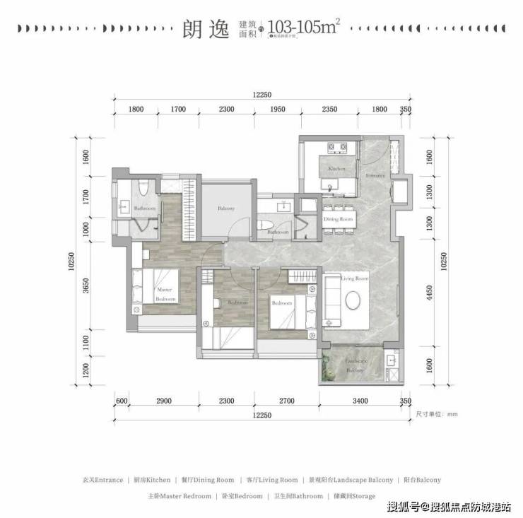 103㎡3房2厅2卫+1灵动空间:总价约485万,四开间朝南,得房率实测达96%;