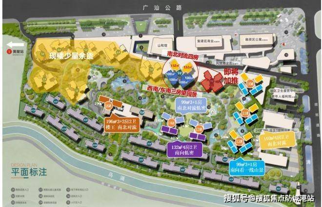 规模与规划:占地面积约 13.36 万㎡,建筑面积约 66.28 万㎡,规划户数 3368 户,容积率 4,绿化率 35%,车位配比 1:1.12,规划 28 栋建筑,包括高层、超高层和叠墅。规划产品涵盖 84 - 196㎡平层以及 12 栋低密度住宅,还自建约 1.8 万㎡商业街、幼儿园及游泳池等生活配套设施。